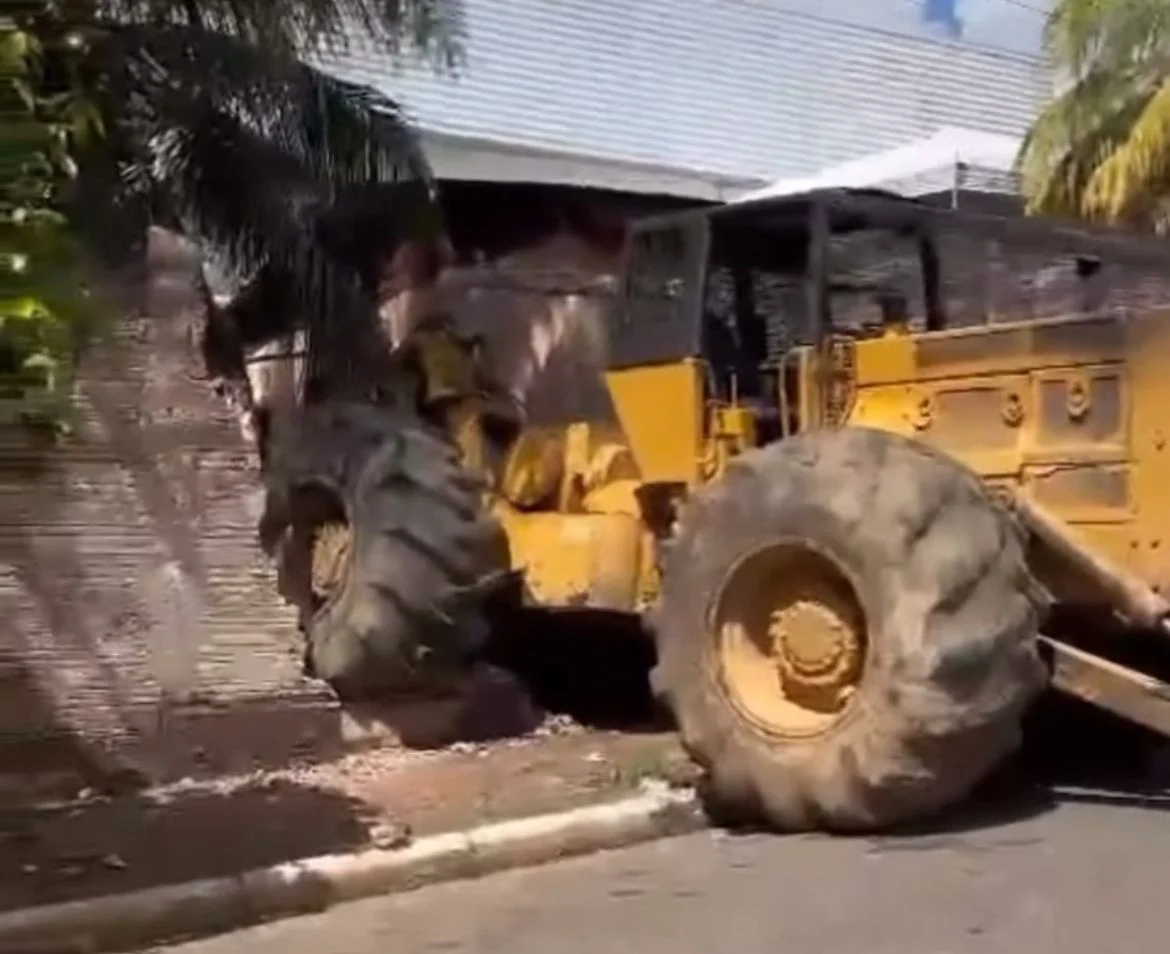 Um incidente envolvendo um trator causou um susto em populares na manhã desta segunda-feira (5). A máquina, que estava sendo transportada em uma carreta, se desprendeu e invadiu o muro de uma casa no bairro Bosque, em Rio Branco.