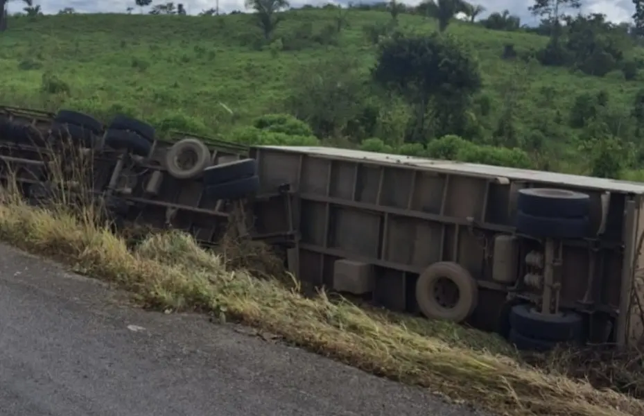 Na tarde desta sexta-feira (13), uma carreta pertencente a uma distribuidora de mercadorias de Rio Branco tombou às margens da BR-364, nas proximidades da comunidade São João, no município de Tarauacá, interior do Acre. Apesar do susto, ninguém ficou ferido no acidente.