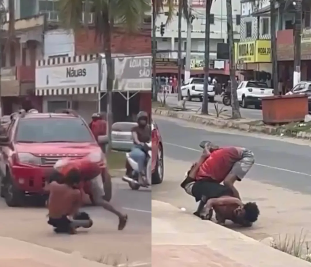 Nas imagens, é possível ver dois homens em luta corporal. Em um determinado momento, um deles aplica um golpe conhecido como arm lock, uma técnica de imobilização comum no jiu-jitsu, usada para forçar a submissão do oponente por meio da torção do braço. A ação chamou atenção de quem assistia à cena, tanto pelo uso da técnica de luta quanto pela possibilidade de o agressor estar armado.