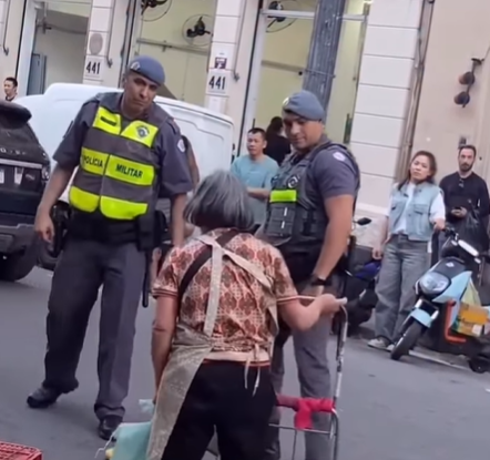 Um vídeo registrado nesta segunda-feira (23) mostra a forma desumana com que trabalhadores ambulantes são tratados pela Polícia Militar de São Paulo. Na gravação, uma idosa de origem asiática, tenta impedir que seu carrinho de trabalho seja apreendido.
