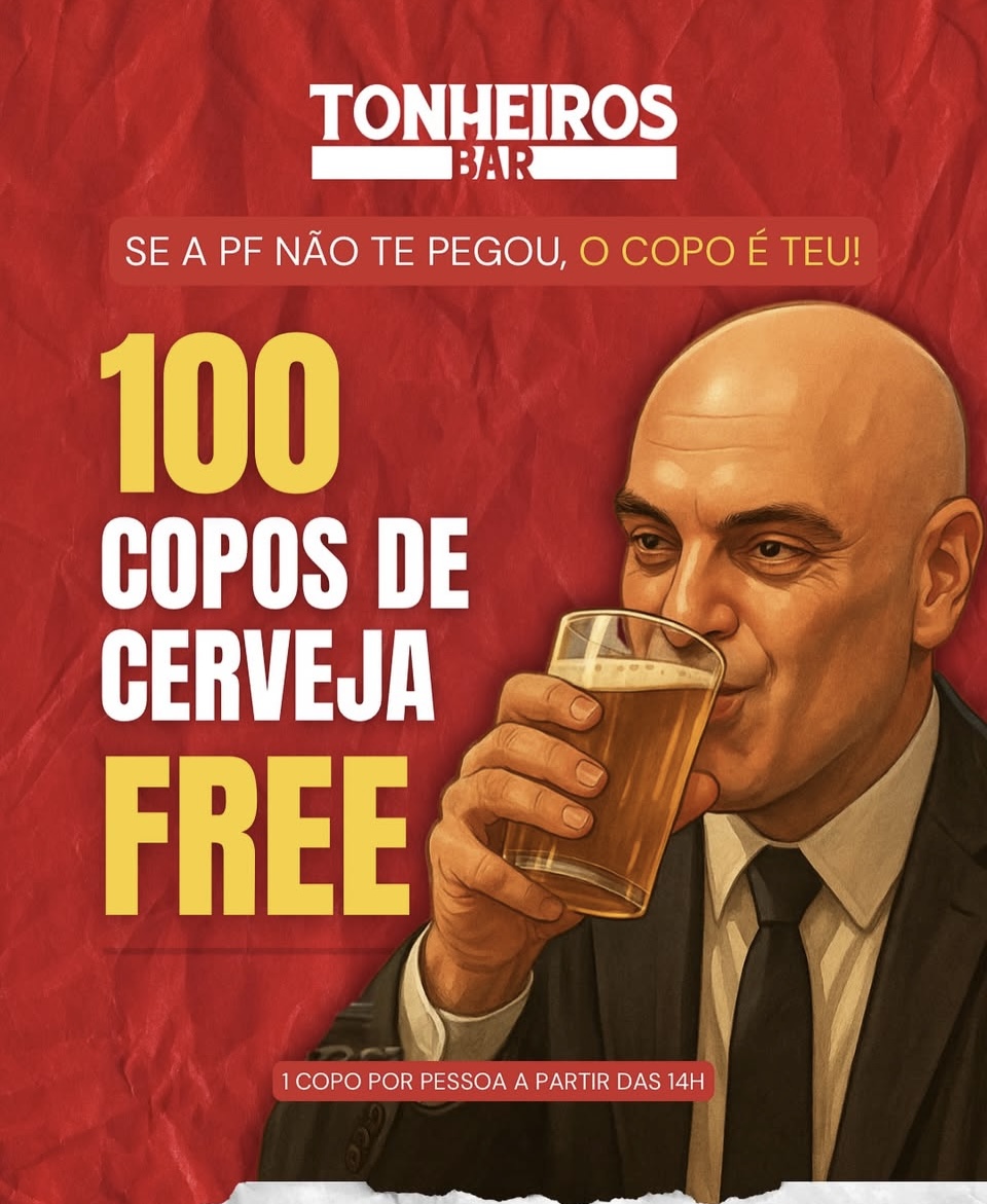 Em uma publicação, o empreendimento afirmou que irá disponibilizar 100 copos de cerveja totalmente de graça em celebração ao ato. “Se a Federal não te buscou hoje, já pode garantir o seu”, destaca.