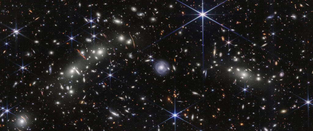 Representado em rosa na imagem composta, esse gás é visível graças ao Chandra, que detecta sua emissão de raios X. Já a matéria escura aparece em azul, embora não possa ser observada diretamente. Os astrônomos sabem que ela está lá por causa da gravidade que exerce sobre a luz de galáxias mais distantes. Esse fenômeno é chamado de lente gravitacional. O JWST conseguiu medir essa distorção com muito mais precisão do que os telescópios anteriores, o que permitiu criar um mapa mais detalhado da sua distribuição.