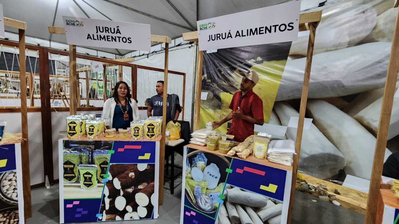 O estande da Juruá Alimentos chama atenção com a apresentação da farofa gourmetizada, unindo tradição e inovação da farinha de Cruzeiro do Sul/Foto: Juan Diaz, ContilNet