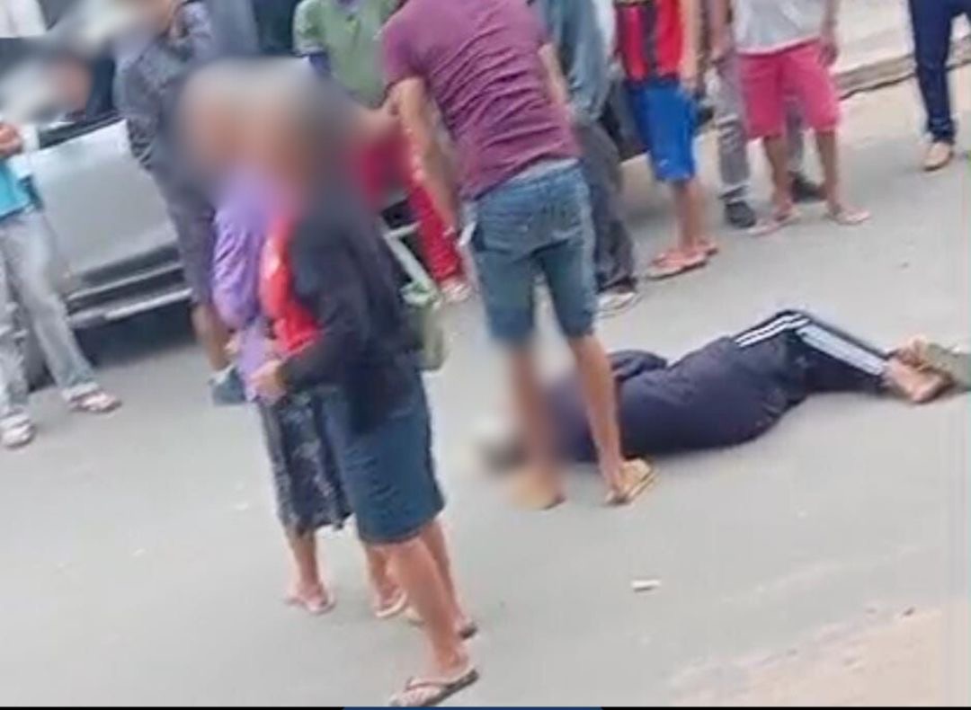 Nas imagens, é possível ver o idoso caído ao chão, inconsciente, enquanto populares tentam prestar os primeiros socorros.