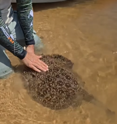 O rapaz capturou uma arraia cujo couro exibia desenhos semelhantes à pele de uma onça.