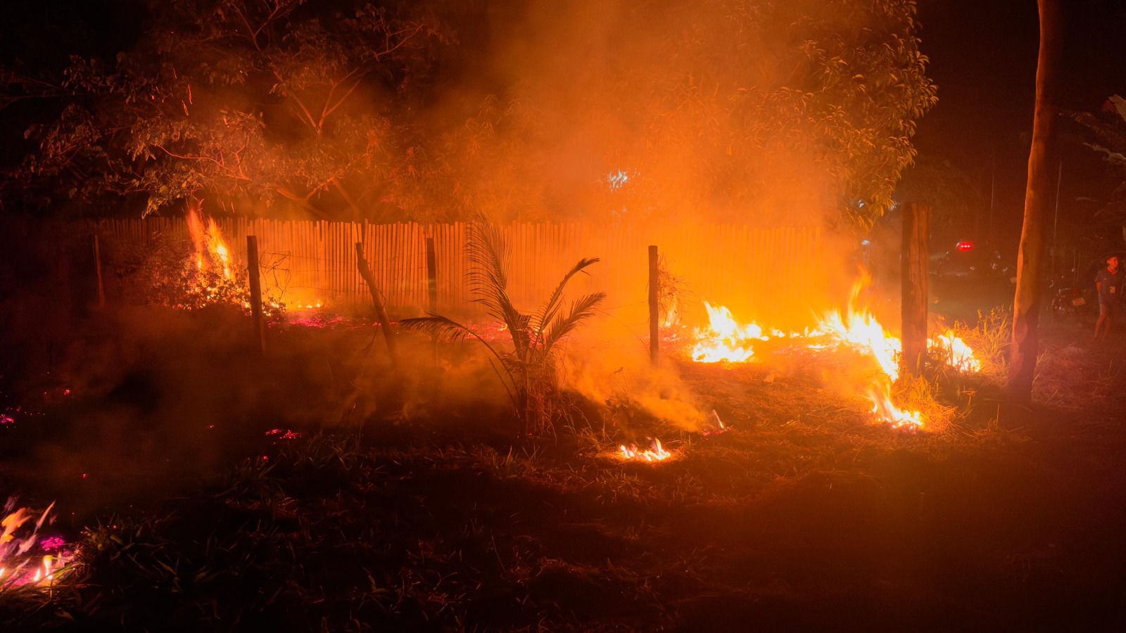 Testemunhas relataram que o incêndio teria sido iniciado por um homem que chegou de motocicleta e, utilizando gasolina, ateou fogo em um terreno, provocando a propagação das chamas.