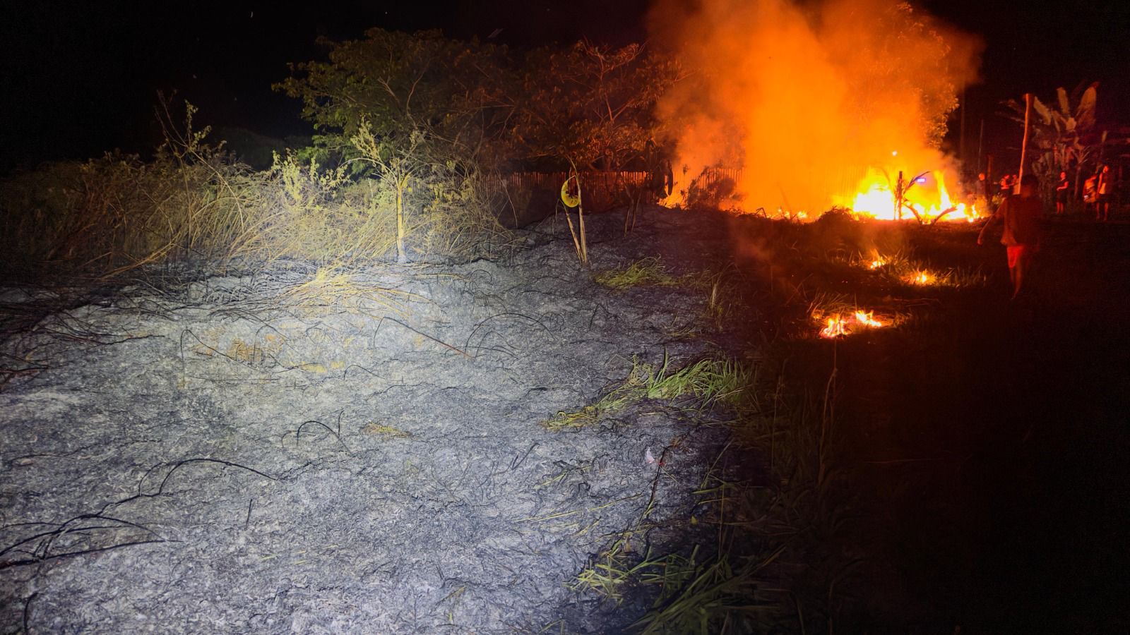 Durante patrulhamento pela Rua 13 de Novembro, no bairro Vila Santa Luzia, a guarnição percebeu as chamas se alastrando rapidamente pela vegetação. Ao chegarem ao Ramal Santa Luzia, os militares encontraram moradores tentando conter o fogo, que ameaçava atingir imóveis próximos.