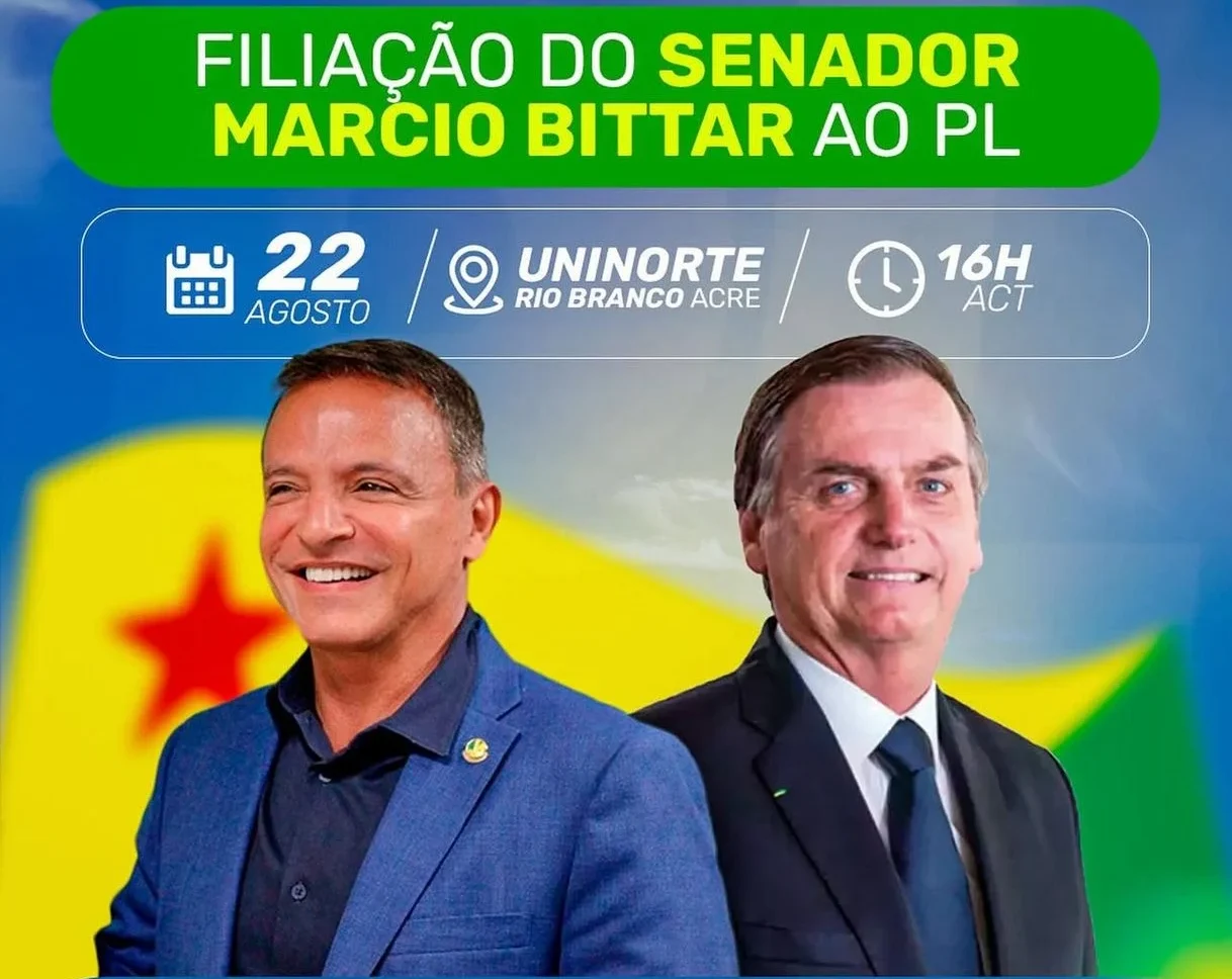 O senador Marcio Bittar oficializará sua filiação ao Partido Liberal (PL) na próxima sexta-feira (22), às 16h, em cerimônia marcada para o auditório da Uninorte, em Rio Branco.
