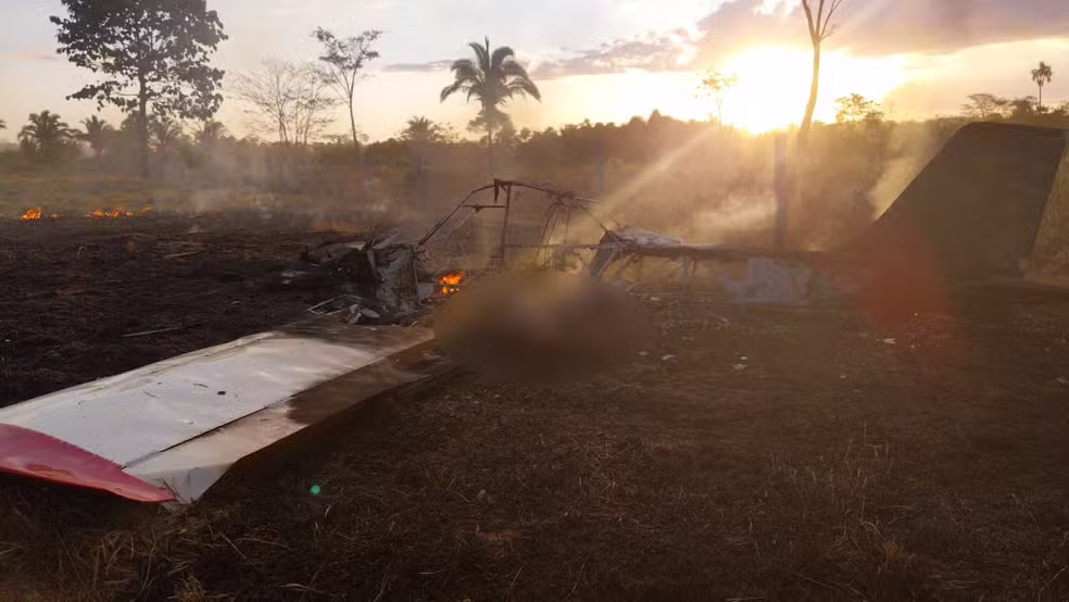 Avião experimental caiu próximo de aeroporto particular de Colniza (MT) — Foto: Polícia Militar