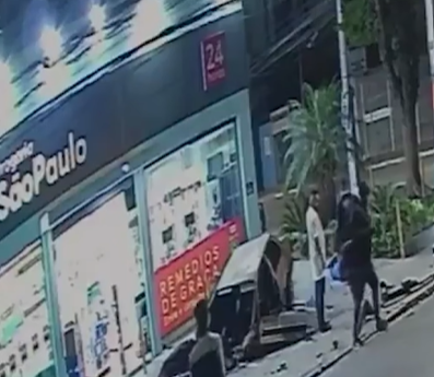 Após alguns segundos, um funcionário da farmácia se aproxima para verificar o ocorrido. Logo em seguida, o passageiro sai andando, enquanto o motorista se deita na calçada. Pessoas que passavam pelo local prestaram ajuda.