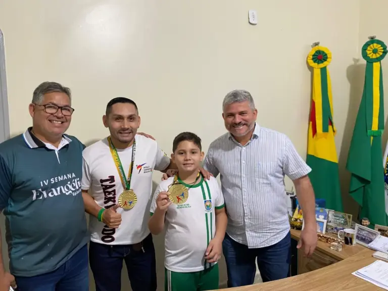 O esporte de Epitaciolândia está em festa! Pai e filho, Josemar e o pequeno Fabianito, de apenas 8 anos, brilharam no Campeonato Brasileiro Regional Norte de Taekwondo, realizado em Rio Branco (AC), nos dias 9 e 10 de agosto, conquistando Medalhas de Ouro em suas categorias.