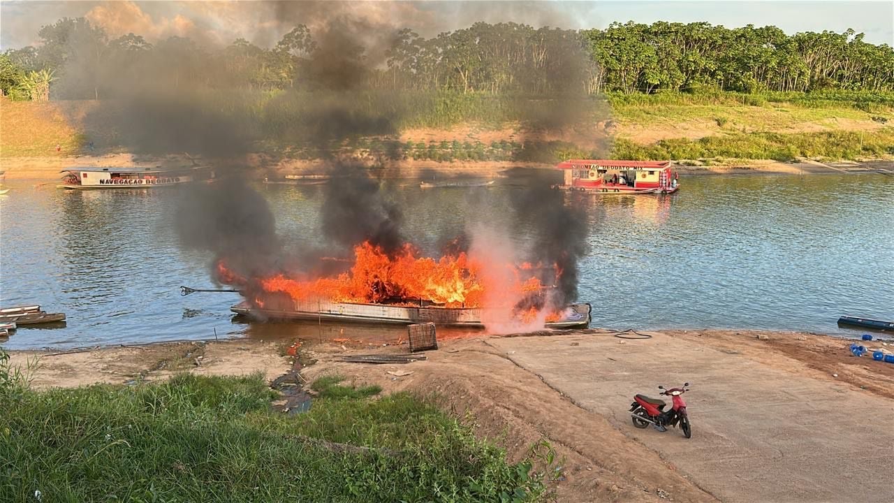Uma balsa que transportava diesel e gasolina pegou fogo na tarde desta quarta-feira (3) no município de Porto Walter, interior do Acre. Apesar do susto e da gravidade do caso, não houve registro de feridos.