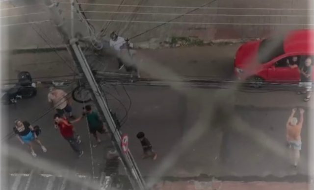 Segundo relatos de testemunhas, ele teria presenciado um possível assalto e decidiu agir por conta própria para imobilizar o suspeito. Um morador da região informou ter ligado para o número de emergência 190, mas até o momento em que as imagens foram gravadas, a polícia ainda não havia chegado.