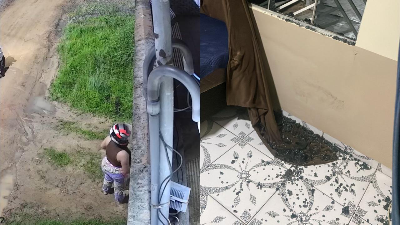 As imagens, obtidas pelo ContilNet, registram o momento em que a mulher chega ao local na garupa de uma motocicleta, usando capacete, e dispara contra a fachada da casa, quebrando o vidro de uma das janelas. Em seguida, ela questiona se o ex-companheiro não vai abrir a porta. Como não obtém resposta, deixa o local na moto.
