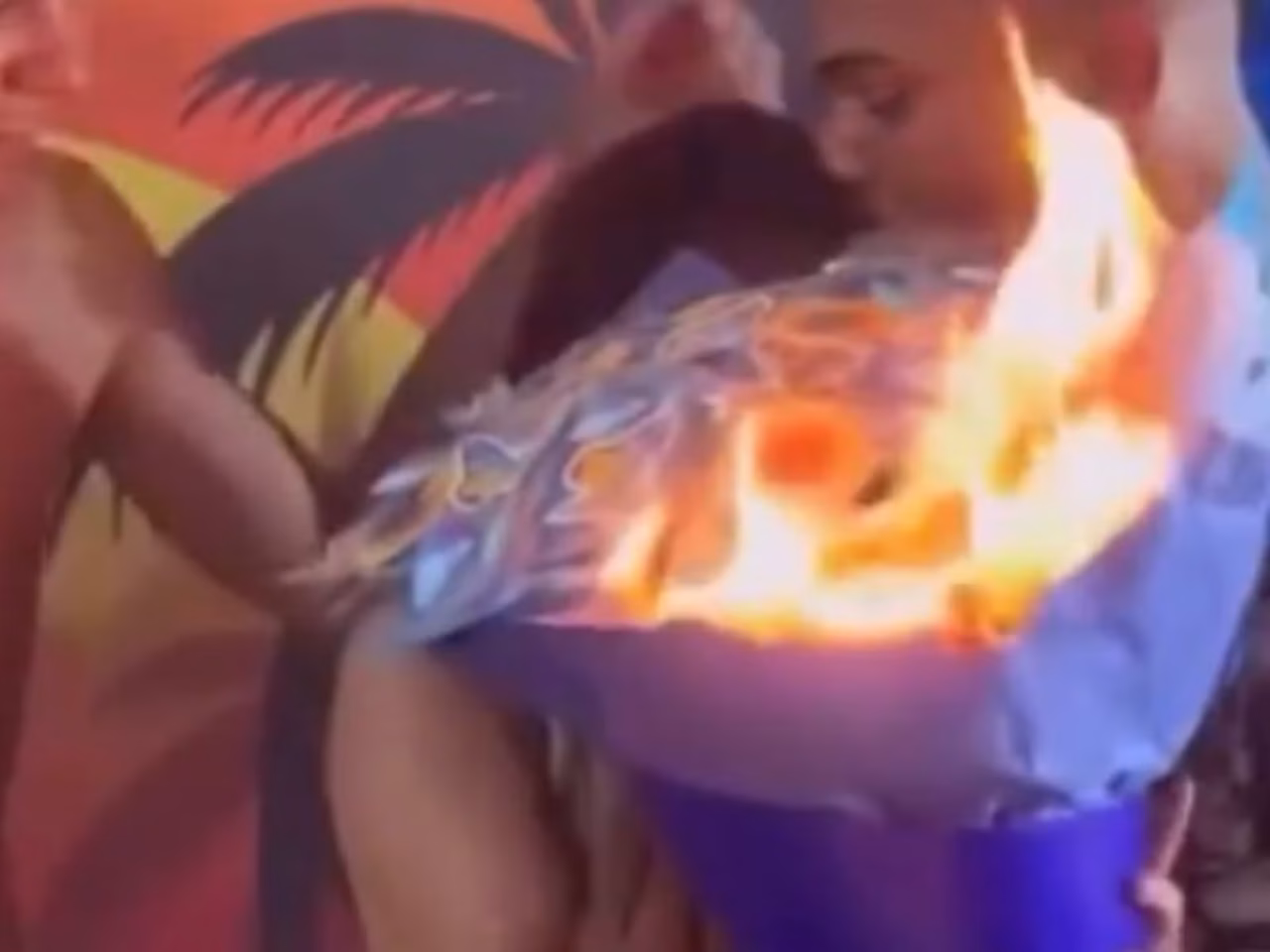 Juan Maceno, o amigo que deu o buquê, relatou o susto: “Quando vi o fogo fiquei em choque. Não sabia se chorava ou se ria junto com ela. Foi um acidente, mas ela sabe que foi de coração.”