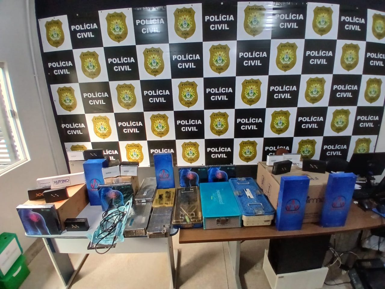 Avaliado em aproximadamente R$ 500 mil, o material estava armazenado em três malas grandes e uma menor, contendo instrumentos de alta complexidade. Entre eles, estavam fonte de luz, cabos de fibra óptica, caixas de instrumental para cirurgias de LCA, pinças, chaves canoladas, guias femorais, martelos, curetas e outros itens hospitalares.