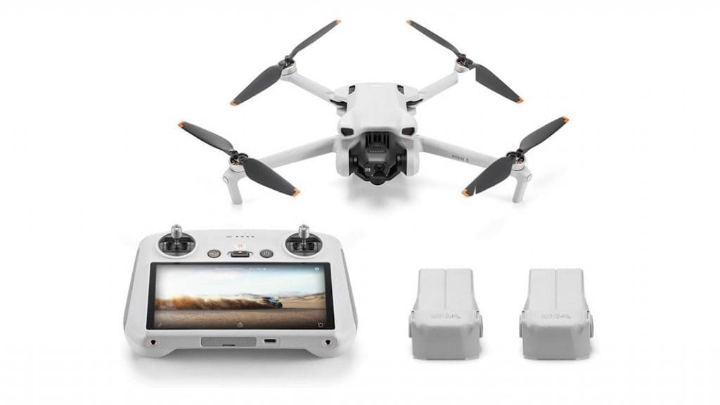 O DJI Mini 3 chama atenção pelo visual leve e pelas hélices pequenas, que o tornam fácil de manobrar no ar. O controle remoto vem com uma tela integrada, que mostra a imagem transmitida pela câmera em tempo real, sem precisar usar o celular.