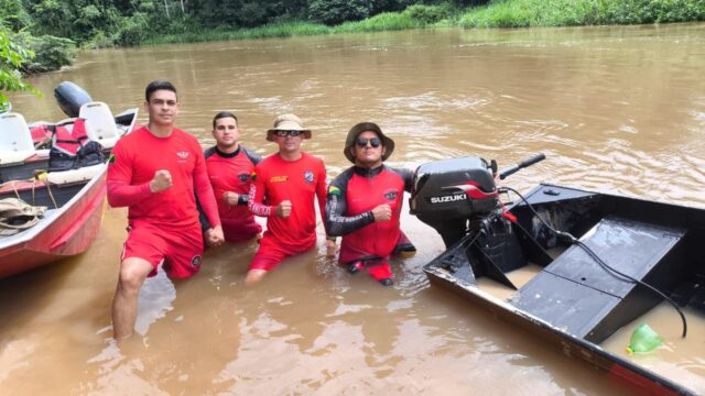 Uma equipe de mergulho do Corpo de Bombeiros Militar do Acre realizou com sucesso uma operação de busca e resgate de bens subaquáticos no Rio Moa, no município de Mâncio Lima, nesta quarta-feira, (29). Os itens recuperados são um motor de popa e uma embarcação de alumínio que naufragaram no dia anterior.