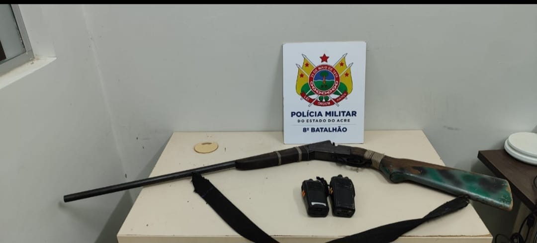 Na noite desta quinta-feira (23) o 8º Batalhão da Polícia Militar atendeu uma ocorrência no ramal dos terçados, BR-364, entre Sena Madureira e Rio Branco. No final das contas, uma arma de fogo foi apreendida e dois infratores conduzidos para a Unidade de Segurança Pública.
