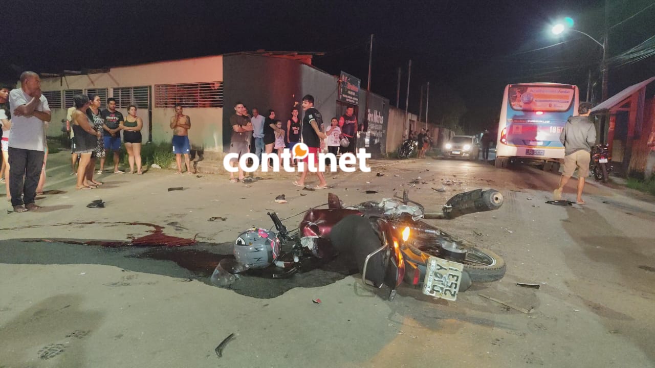 O motociclista Ray Silva da Costa, de 20 anos, ficou gravemente ferido após se envolver em um acidente de trânsito com um ônibus da empresa Ricco na noite desta quarta-feira (22), no cruzamento das ruas Laranja e Ingá, no bairro Mocinha Magalhães, em Rio Branco.