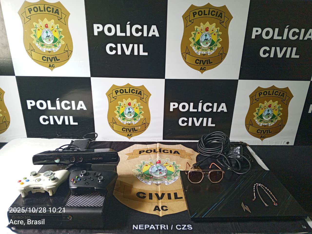 A Polícia Civil do Acre, por meio do Núcleo de Combate a Crimes Patrimoniais (Nepatri), solucionou um furto ocorrido no último sábado, 25 de outubro de 2025, em uma residência localizada no bairro Aeroporto Velho, em Cruzeiro do Sul. Em menos de 72 horas, os investigadores conseguiram identificar o autor do crime e recuperar todos os bens subtraídos.