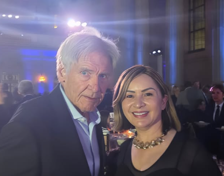 Socorro Neri posa ao lado de Harrison Ford durante o Jantar de Gala do Congresso Americano pela Conservação Ambiental, em Washington, D.C/Foto: Reprodução