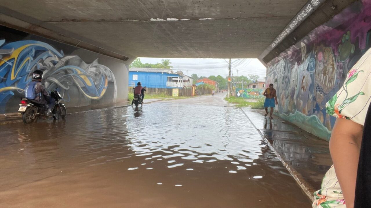 Na Travessa Cearense, no bairro Seis de Agosto, o volume de água foi suficiente para deixar o trânsito lento e causar pequenos alagamentos. Motoristas precisaram redobrar a atenção para conseguir atravessar o trecho, com muita água acumulada e com sistema de drenagem sem funcionar.