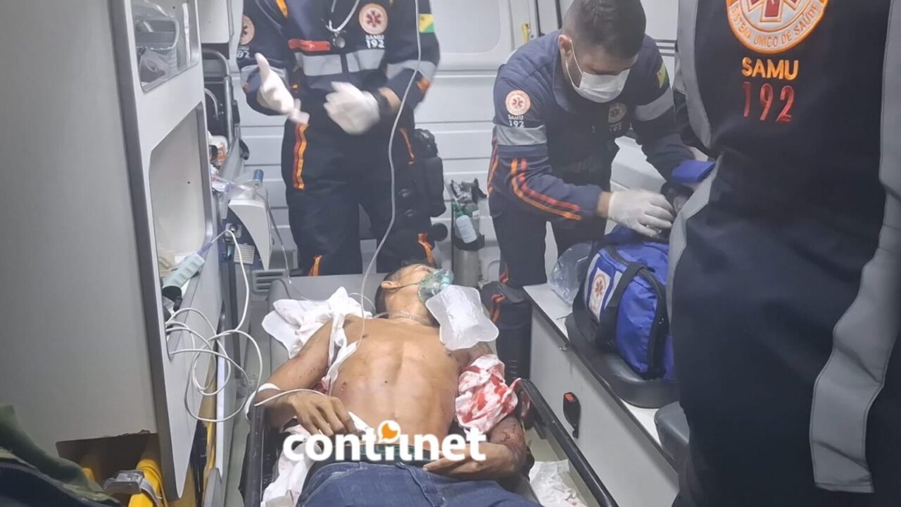 A vítima foi atingida no tórax, abdômen e braço esquerdo e permanece internada em estado gravíssimo.