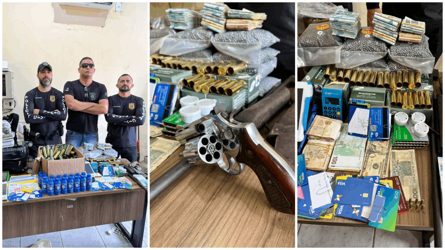 Durante a operação, os agentes apreenderam 300 cartões do Bolsa Família, aproximadamente R$ 70 mil em dinheiro, valores em dólar e euro, além de 6 mil litros de combustível, celulares, máquinas de cartão, cadernos de anotações, duas espingardas, um revólver, 250 quilos de chumbo e 300 espoletas. Parte desse material estava armazenada de forma irregular, representando risco à população local.