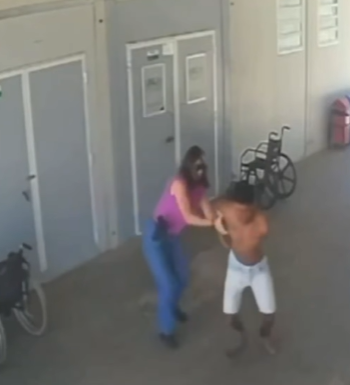 Sozinha e sem hesitar, a policial civil Larissa Freire, da Delegacia de Defesa da Mulher de Quixadá, no Ceará, protagonizou uma cena impressionante de coragem.