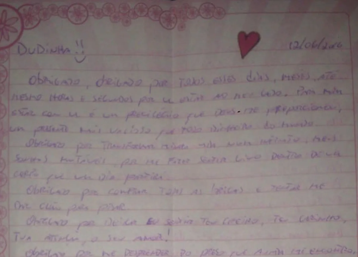Carta que Cristian Cravinhos teria escrito para Dudinha
