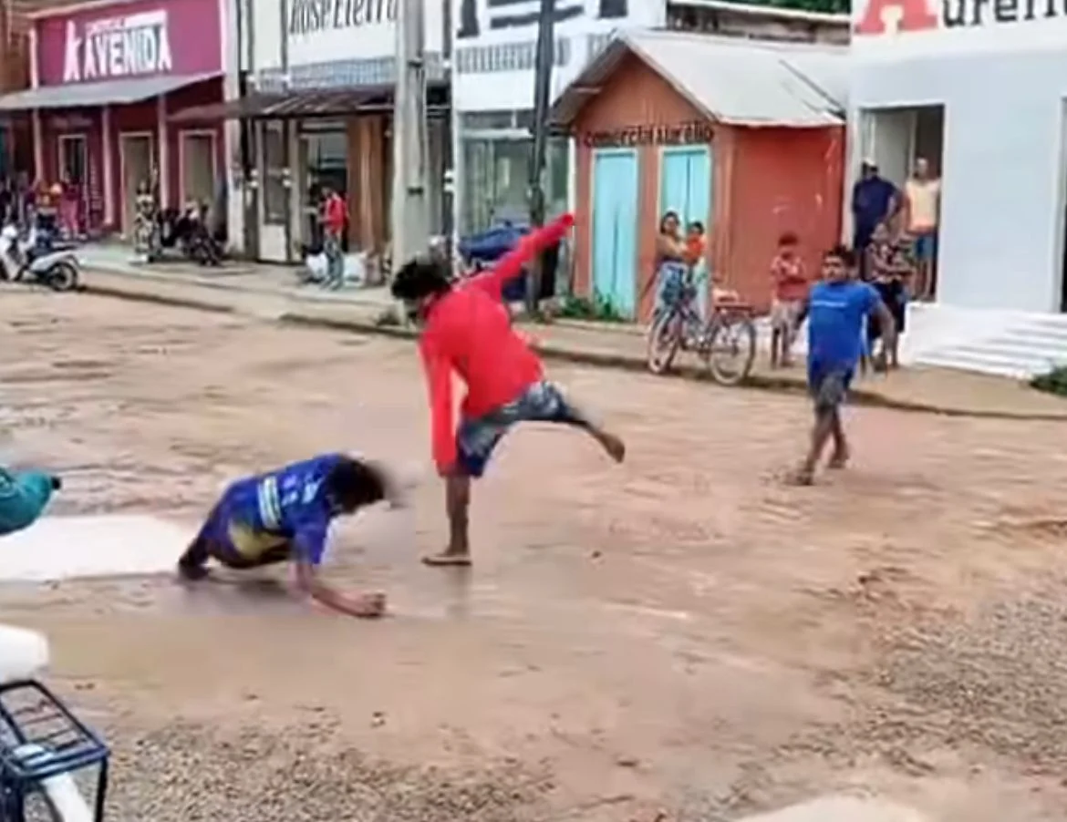 Um vídeo que circula nas redes sociais registra o momento em que dois indígenas entram em confronto físico em uma rua de Jordão. As imagens foram divulgadas pela página Tarauacá Oficial.