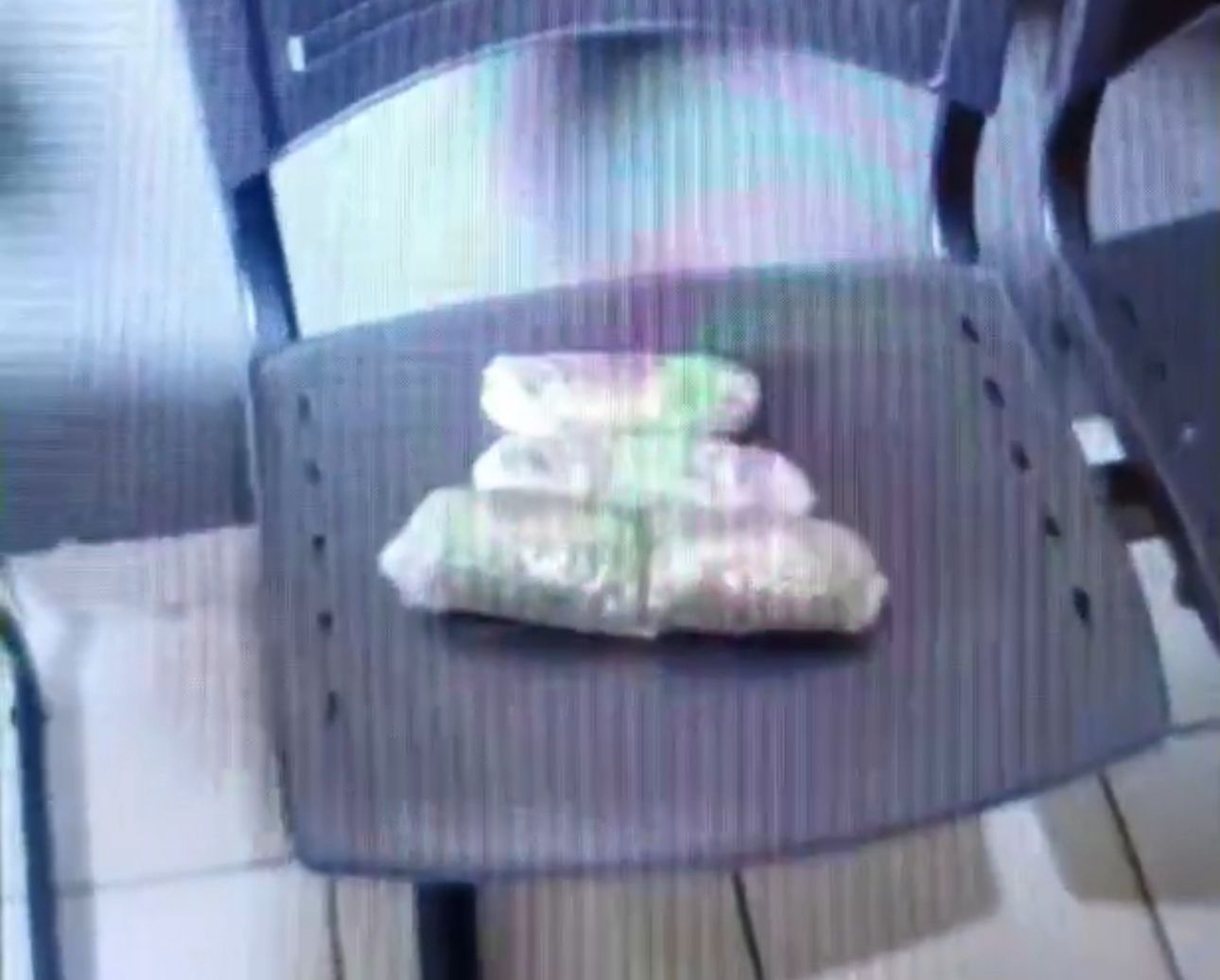 Ela foi conduzida a uma sala reservada, onde, na presença de duas policiais penais, retirou dez pacotes de substância semelhante à maconha, encontrados tanto na bolsa quanto escondidos em seu sutiã.