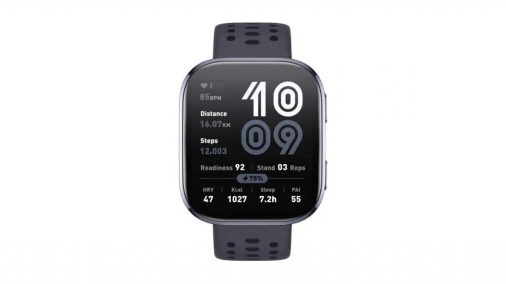 No monitoramento de saúde, o relógio acompanha frequência cardíaca, níveis de oxigênio no sangue (SpO₂), estresse e sono, incluindo registros de estágios do sono e cochilos. As medições podem ser feitas de forma contínua ou acionadas manualmente, com histórico acessível no próprio relógio e no aplicativo para smartphones.