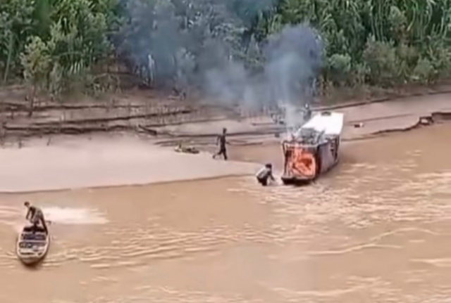 Um vídeo que circula nas redes sociais registra um incêndio em uma embarcação no rio Muru, próximo à comunidade Paraíso, na zona rural do município de Tarauacá, no Acre. O incidente ocorreu em uma área ribeirinha da região.