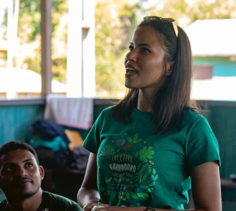 Tanto ela quanto Kailane encontraram uma saída: fazem graduação a distância, sem abandonar suas comunidades. “Eu, por agora, não penso em sair”, garante Kailane. “Desde que eu nasci, eu moro lá, tenho 20 anos”. Além do Coletivo Varadouro, ela integra a Rede de Mulheres da Floresta e coordena o Núcleo de Base da comunidade Dois Irmãos.