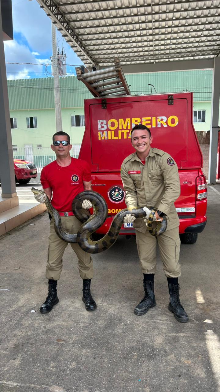Utilizando cordas, os moradores conseguiram conter a serpente até a chegada do Corpo de Bombeiros. Uma equipe do 4º Batalhão realizou o resgate técnico, garantindo a segurança da população e do próprio animal.