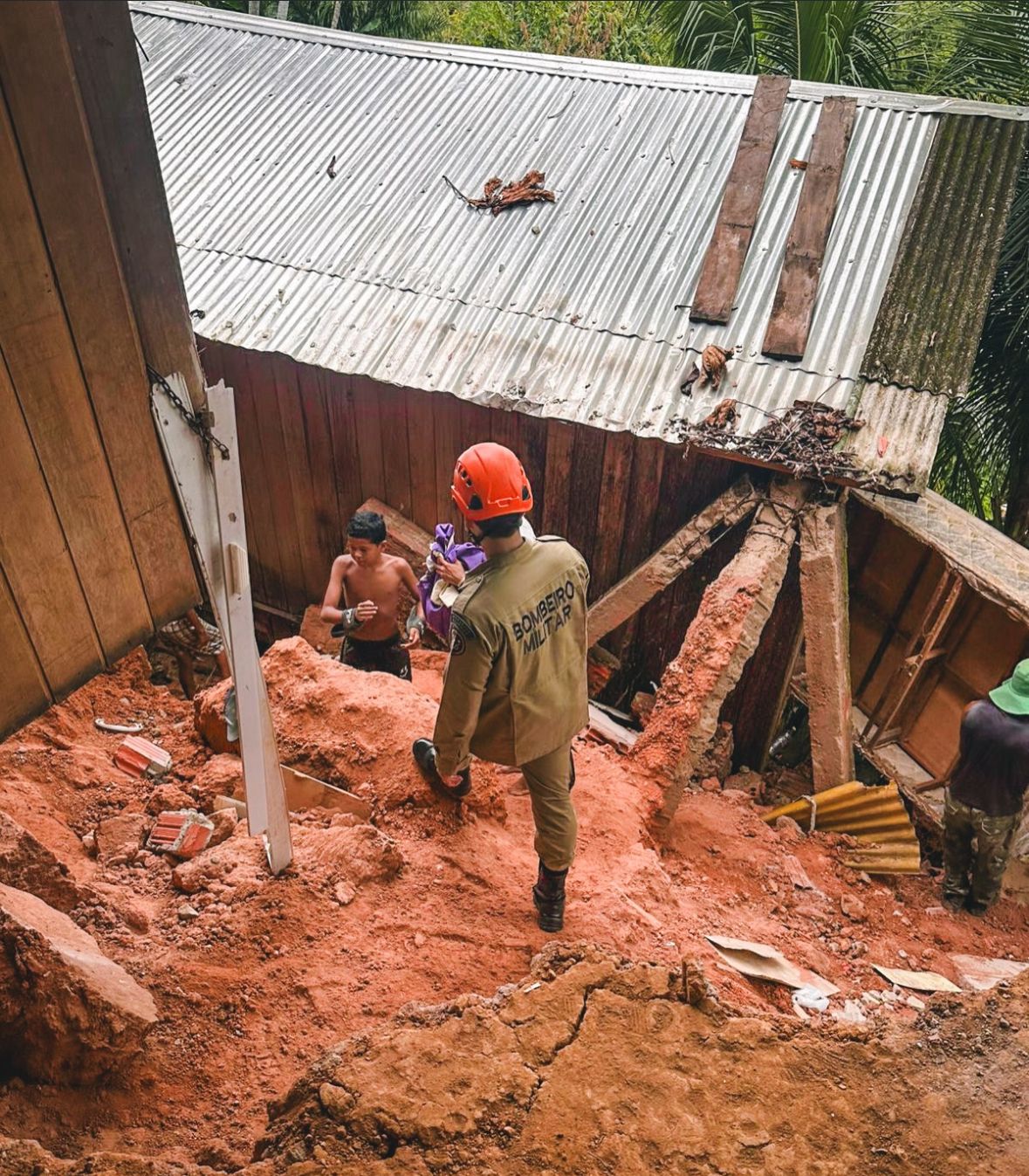 Ao chegar ao local, a guarnição constatou a instabilidade do terreno, que oferecia risco à estrutura do imóvel e à segurança dos moradores