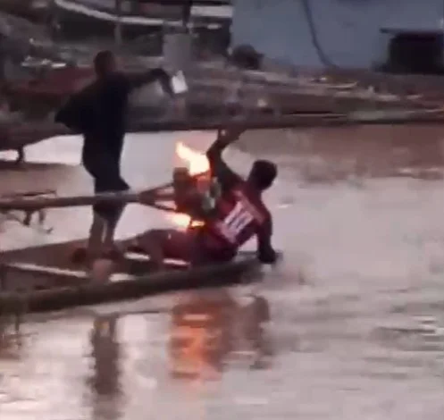 Na tarde desta segunda-feira (05), um morador de Feijó, cidade localizada no interior do Acre, passou por um grande susto quando o motor de sua embarcação pegou fogo de forma inesperada, gerando pânico entre as pessoas que estavam no porto.
