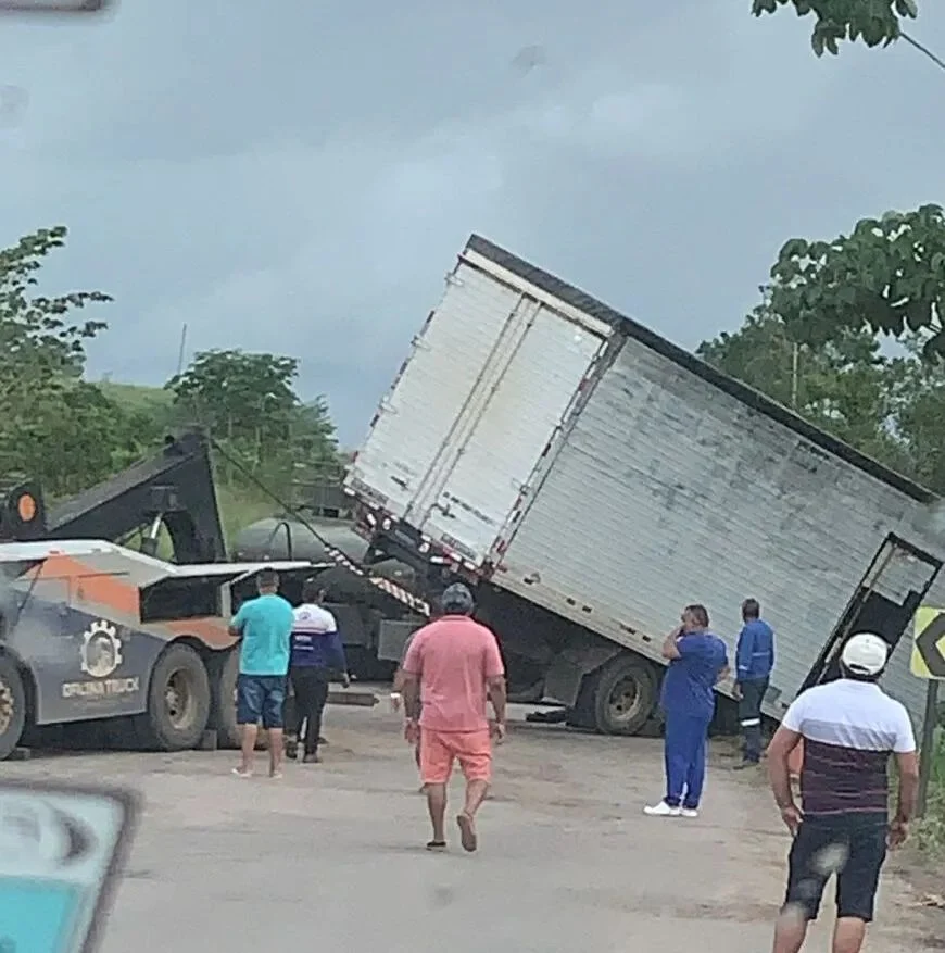 De acordo com caminhoneiros que passavam pela área, o motorista teria perdido o controle do caminhão devido às condições da estrada, o que fez o veículo sair da pista e parar em um local de difícil acesso, às margens da rodovia.