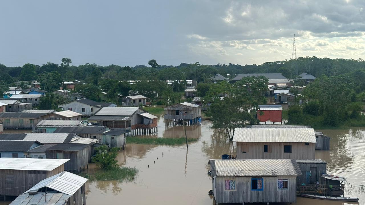 O nível do rio Juruá, em Cruzeiro do Sul, chegou a 13,44 metros nesta quinta-feira (5) e permanece estável desde as 18h da quarta-feira (4). Apesar do aumento do volume de água, até o momento não houve necessidade de retirada de famílias das áreas alagadas.