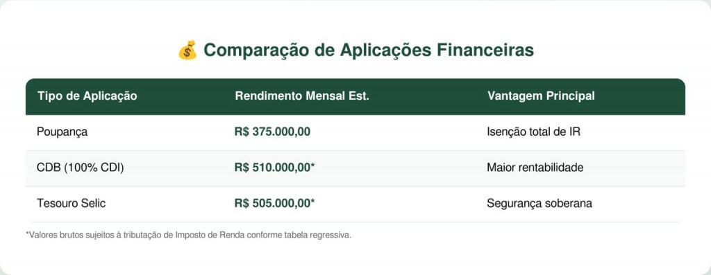 Para quem deseja potencializar o patrimônio, migrar parte do capital para o mercado imobiliário ou fundos de ações pode ser vantajoso a longo prazo. No entanto, o conforto de receber centenas de milhares de reais todos os meses sem qualquer risco de oscilação negativa atrai a maioria dos novos milionários que buscam tranquilidade.