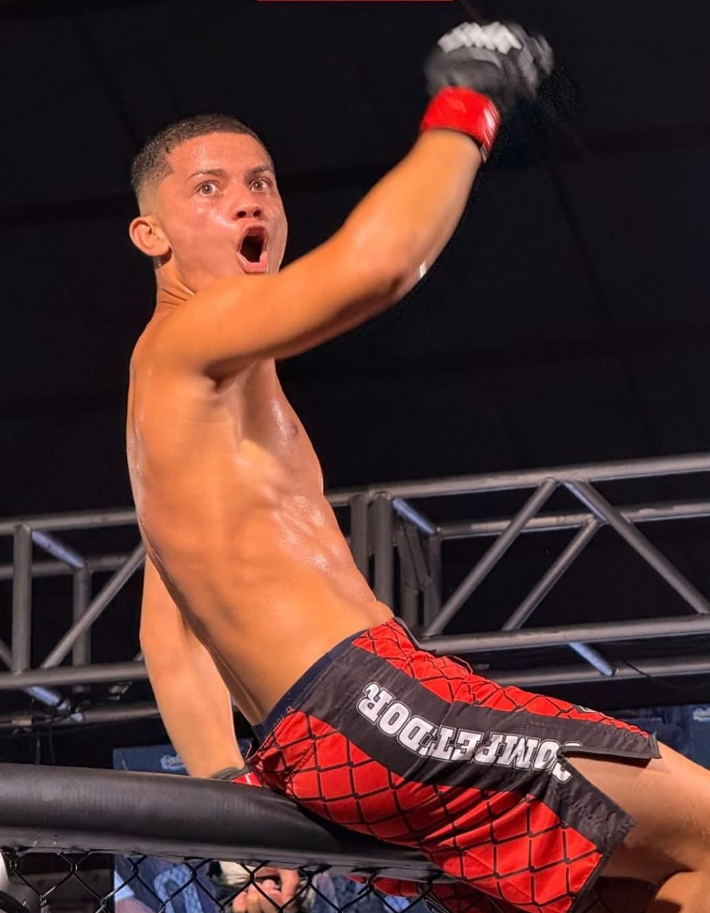 O lutador Ruan Gomes Pontes, de 18 anos e 1,75m de altura, foi um dos destaques do evento realizado no sábado (28), no Ginásio Jader Machado, durante um dos maiores eventos de MMA já promovidos em Cruzeiro do Sul. O atleta conquistou o título ao vencer o oponente por nocaute ainda no primeiro round.